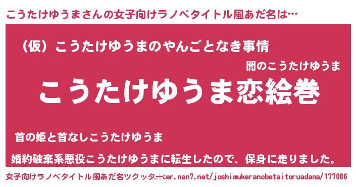| 意味不明あだ名 | 『眠気覚ましガムこうたけゆうま味』 |