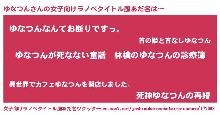 | 男性向けラノベタイトル風あだ名 | 『魔弾の王とゆなつん』 |