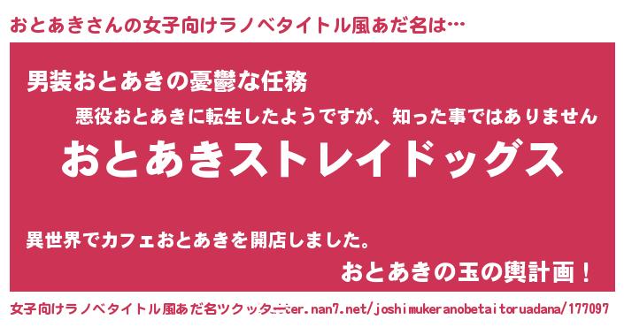 | 男性向けラノベタイトル風あだ名 | 『Re:おとあきから始める異世界生活』 |