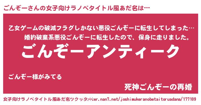| 男性向けラノベタイトル風あだ名 | 『魔法科高校のごんぞー』 |
