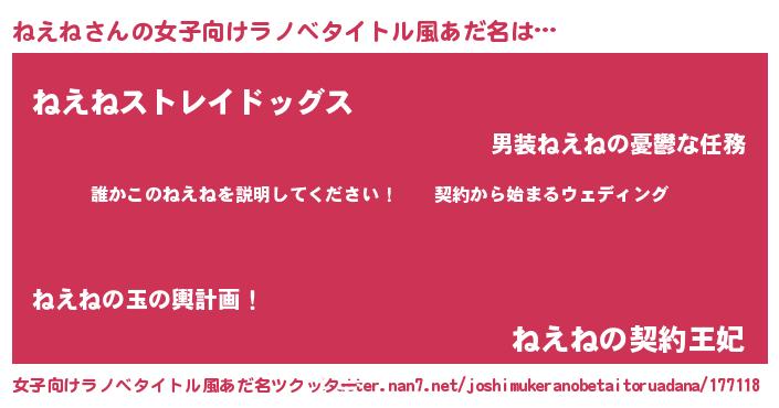 | ヘコむあだ名 | 『ねえにー』『ねえね(笑)』『ねえを』 |