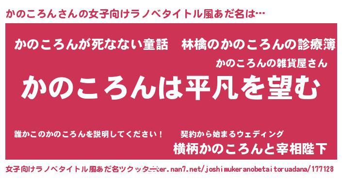 | 胡散臭い通販商品みたいなあだ名 | 『信頼と実績のサプリメント…その名も「かのころん」』 |