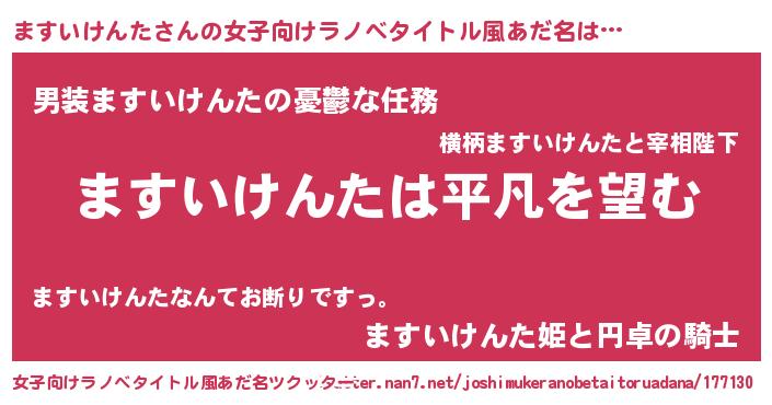 | ヒーロー風カッコイイあだ名 | 『暗黒騎士マス』『スーパーマスイケンタ』 |