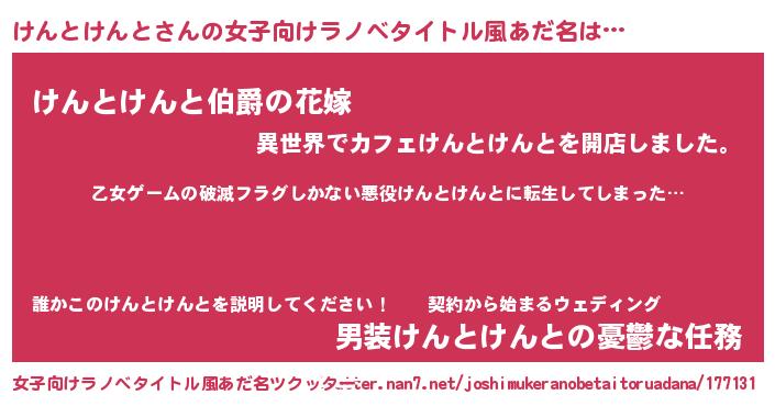 | 意味不明あだ名 | 『住所不定無職けんとけんと(98歳)』 |