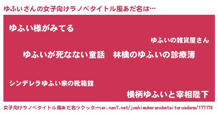 | 意味不明あだ名 | 『住所不定無職ゆふい(4歳)』 |