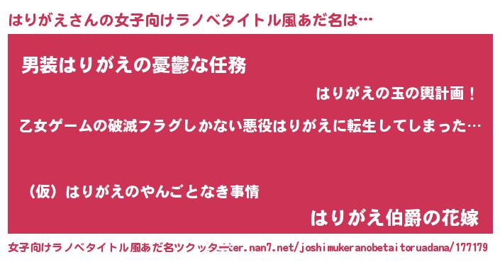 | 胡散臭い通販商品みたいなあだ名 | 『世界中を虜にした世界で10本だけ現存している希少なブランデー…その名も「はりがえ」』 |