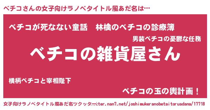 | 男性向けラノベタイトル風あだ名 | 『やはりベチコの青春ラブコメはまちがっている 』 |