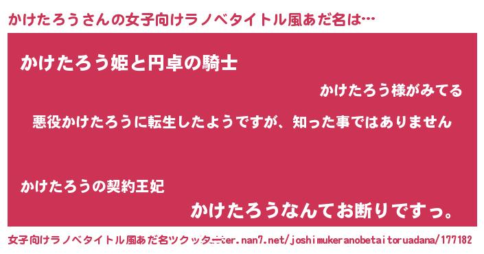 | 男性向けラノベタイトル風あだ名 | 『この素晴らしい世界にかけたろうを!』 |