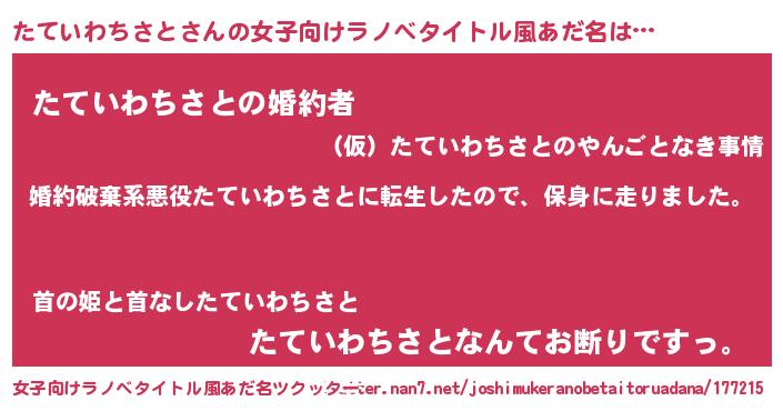 | 男性向けラノベタイトル風あだ名 | 『タテイワチサトスレイヤー』 |