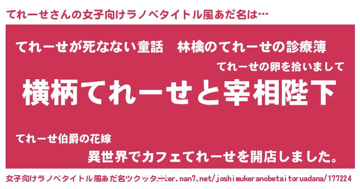 | 胡散臭い通販商品みたいなあだ名 | 『あなたにだけ特別に提供する世界で10本だけ現存している希少なブランデー…その名も「てれーせ」』 |