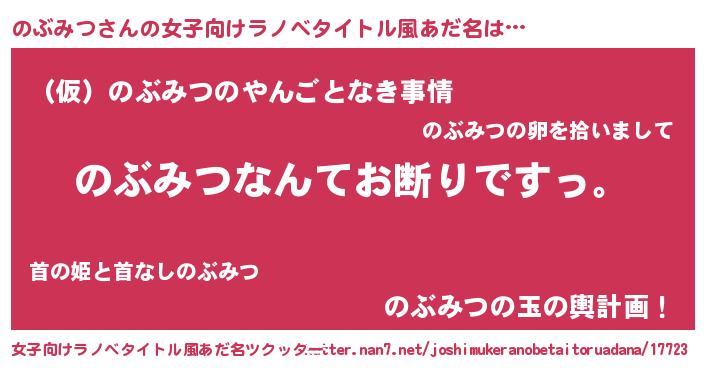 | 男性向けラノベタイトル風あだ名 | 『魔法科高校ののぶみつ』 |