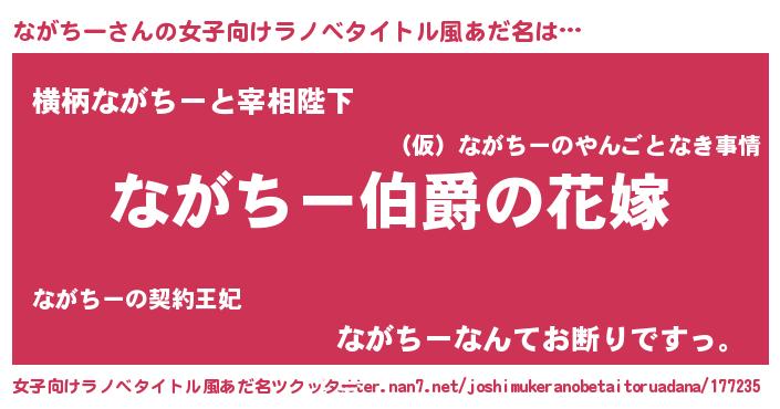 | 男性向けラノベタイトル風あだ名 | 『やはりながちーの青春ラブコメはまちがっている 』 |