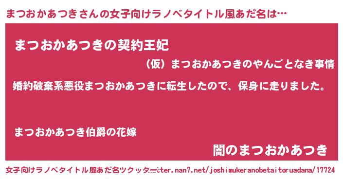 | 男性向けラノベタイトル風あだ名 | 『転生したらまつおかあつきだった件』 |
