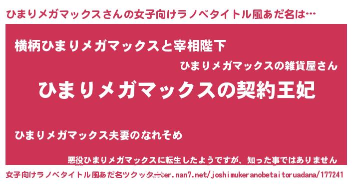 | 男性向けラノベタイトル風あだ名 | 『誰もが恐れるあのひまりメガマックスが、ぼくの専属メイドになるようです。』 |