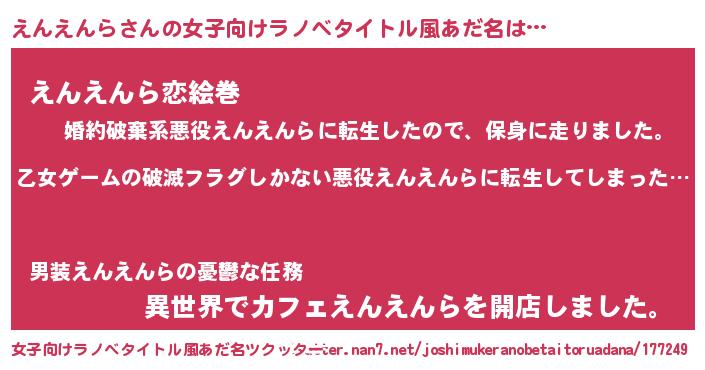 | 胡散臭い通販商品みたいなあだ名 | 『世界中を虜にした世界で10本だけ現存している希少なブランデー…その名も「えんえんら」』 |