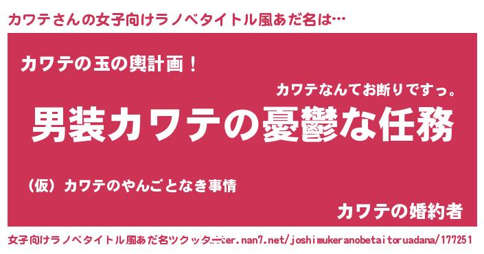 | 胡散臭い通販商品みたいなあだ名 | 『世界が平和になる高級そうな壺…その名も「カワテ」』 |
