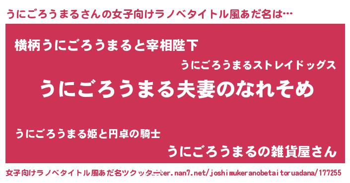 | 男性向けラノベタイトル風あだ名 | 『おまえをオタクにしてやるから、俺をうにごろうまるにしてくれ! 』 |
