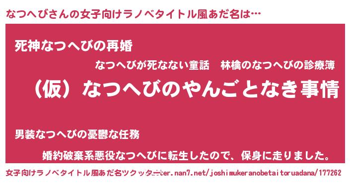 | ヘコむあだ名 | 『なつにー』『なつへび(小並感)』 |