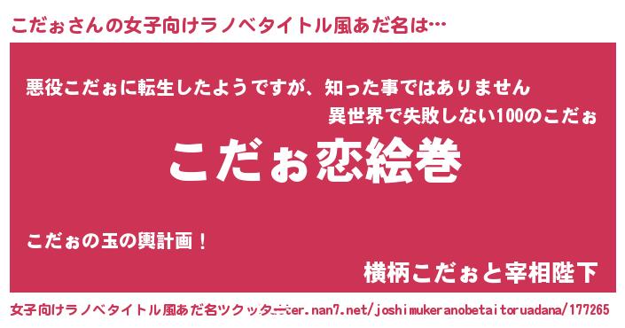 | 男性向けラノベタイトル風あだ名 | 『ノーゲーム・ノーコダォ』 |