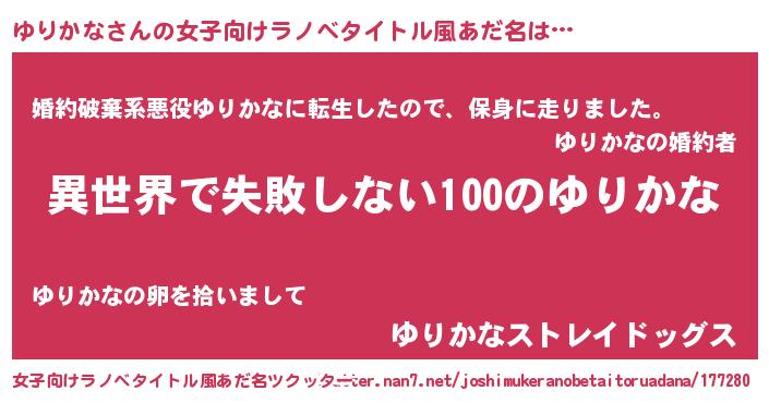 | ファンタジー風あだ名 | 『ユリディッシュ』『ユリユリヴァット』 |