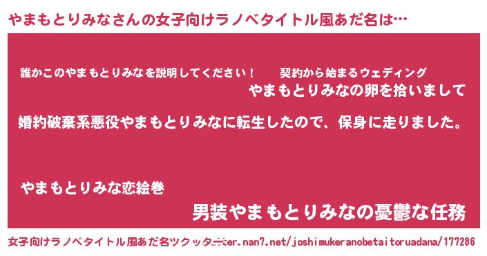 | 胡散臭い通販商品みたいなあだ名 | 『必ず成功するブレスレット…その名も「やまもとりみな」』 |
