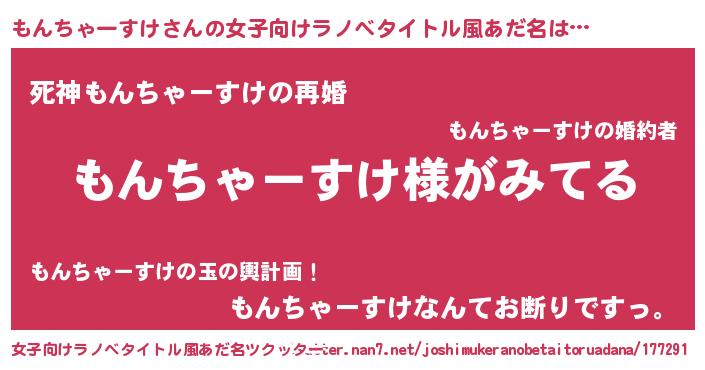 | 男性向けラノベタイトル風あだ名 | 『もんちゃーすけの嫁は女の子じゃないと思った?』 |