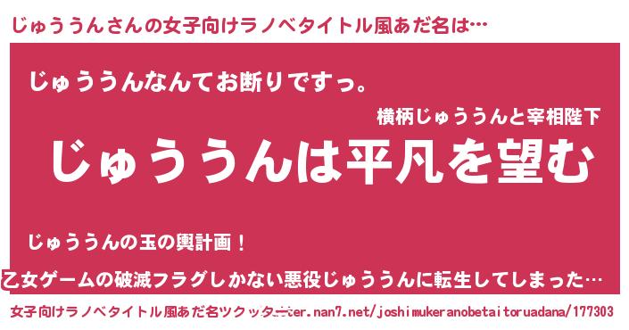 | 男性向けラノベタイトル風あだ名 | 『ダンジョンにじゅううんを求めるのは間違っているだろうか』 |