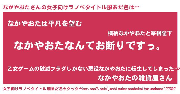 | 意味不明あだ名 | 『自称なかやおた』『ペロリンなかやおた』 |