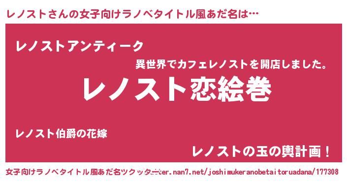 | ヘコむあだ名 | 『レノスト(小並感)』『レバニラ』 |