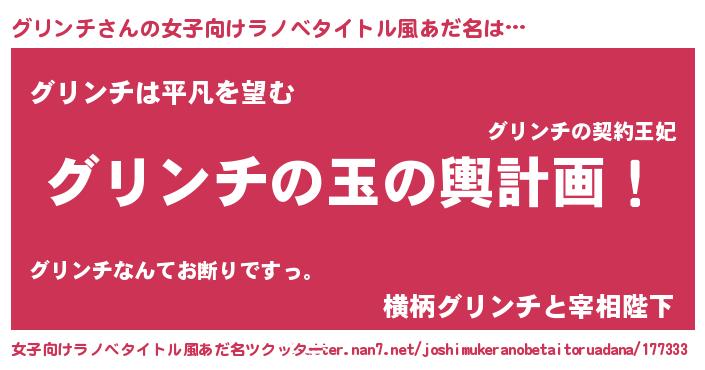 | 意味不明あだ名 | 『なめこ科グリンチ属』『自称グリンチ』 |