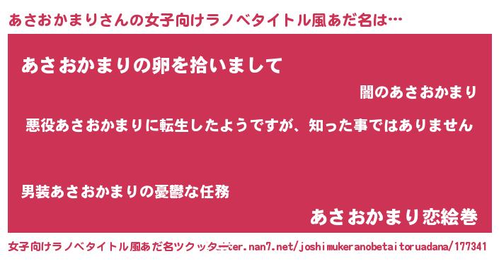 | 胡散臭い通販商品みたいなあだ名 | 『あなたにだけ特別に提供する世界で10本だけ現存している希少なブランデー…その名も「あさおかまり」』 |