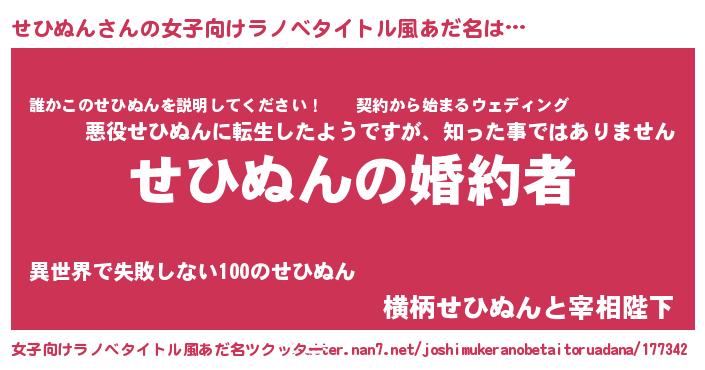 | 意味不明あだ名 | 『せひぬんフォーエバー』 |