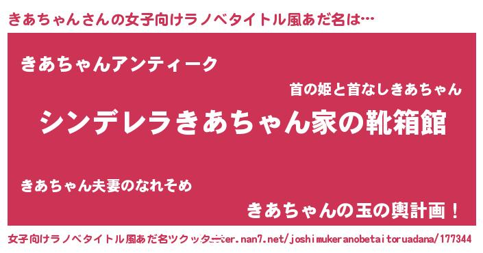| 恥ずかしいあだ名 | 『キアチャンデラックス』『きあっちょ』 |