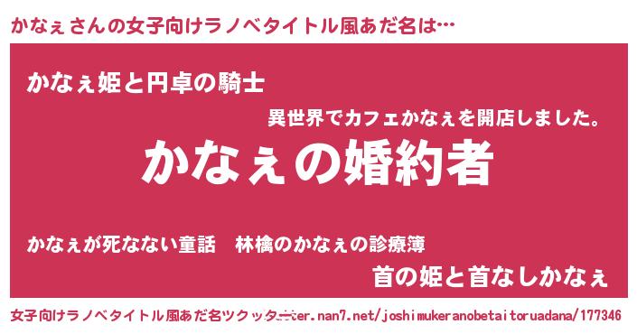 | 意味不明あだ名 | 『かなぇフォーエバー』『ペロリンかなぇ』 |