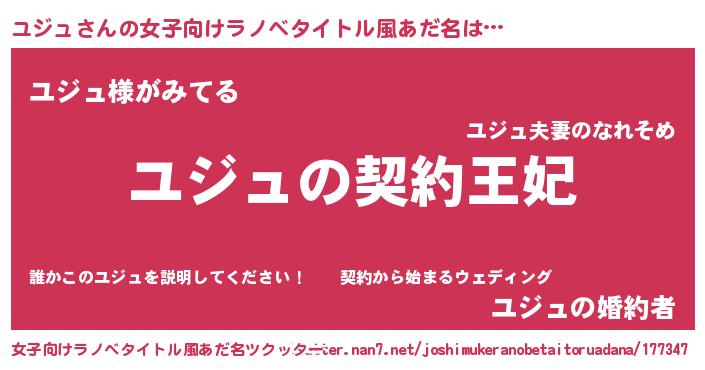 | 男性向けラノベタイトル風あだ名 | 『誰もが恐れるあのユジュが、ぼくの専属メイドになるようです。』 |