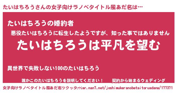 | 胡散臭い通販商品みたいなあだ名 | 『信頼と実績のサプリメント…その名も「たいはちろう」』 |
