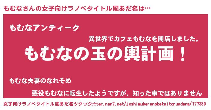 | ヘコむあだ名 | 『もむな(笑)』『豆乳』『もむもー』 |