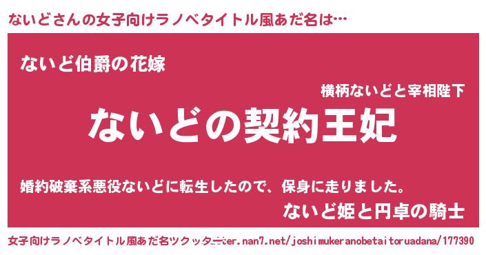 | 胡散臭い通販商品みたいなあだ名 | 『来世でも幸せになれる水素水…その名も「ないど」』 |