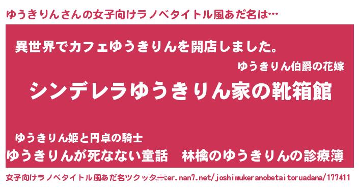 | 胡散臭い通販商品みたいなあだ名 | 『来世でも幸せになれる健康食品…その名も「ゆうきりん」』 |