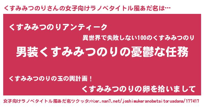 | 胡散臭い通販商品みたいなあだ名 | 『テレビで話題の高麗人参…その名も「くすみみつのり」』 |