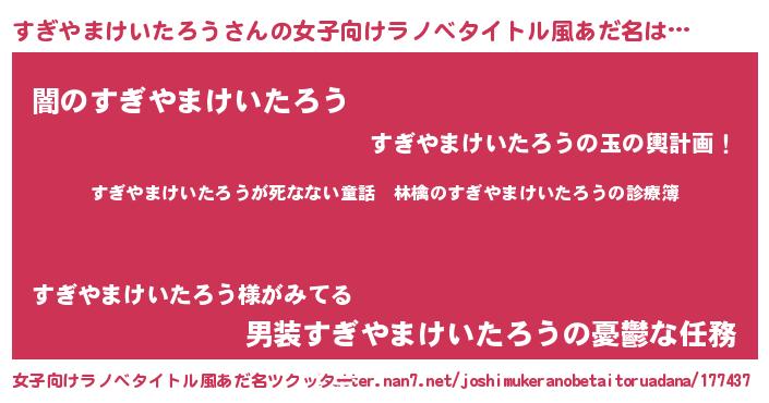 | 意味不明あだ名 | 『住所不定無職すぎやまけいたろう(40歳)』 |