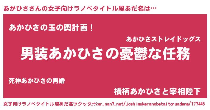 | 意味不明あだ名 | 『つくし科あかひさ属』『自称あかひさ』 |
