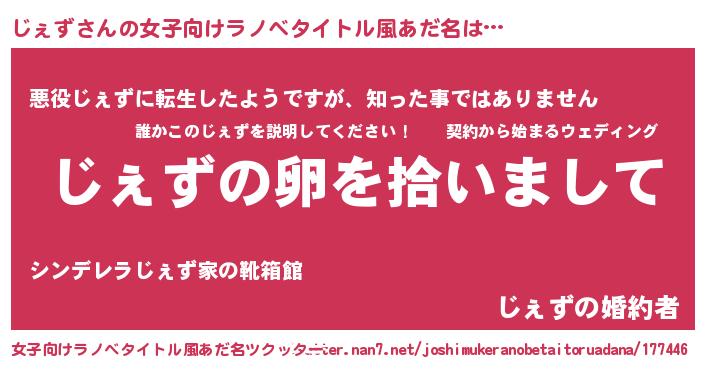 | 男性向けラノベタイトル風あだ名 | 『じぇずの嫁は女の子じゃないと思った?』 |