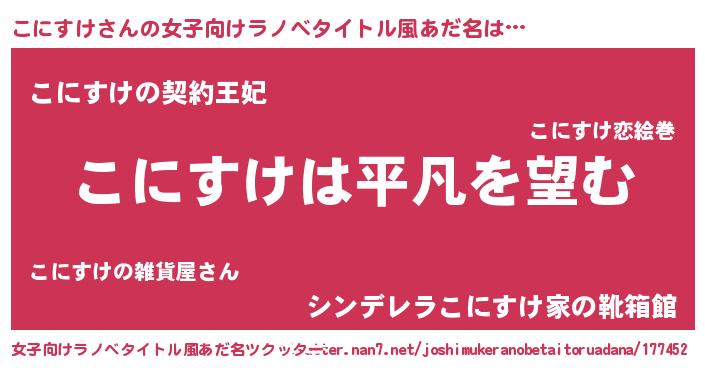 | 男性向けラノベタイトル風あだ名 | 『ダンジョンにこにすけを求めるのは間違っているだろうか』 |