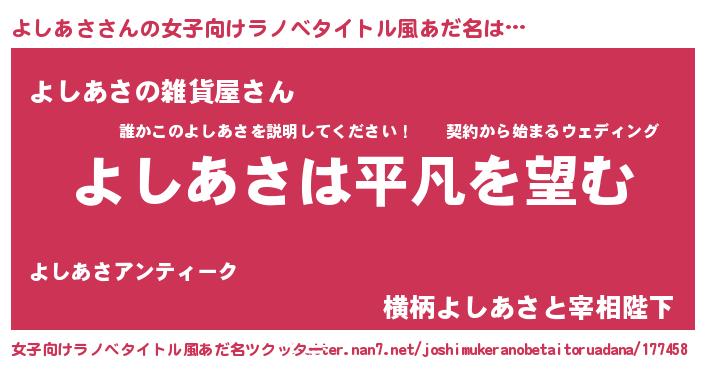 | 意味不明あだ名 | 『とにかく怪しいよしあさ』 |