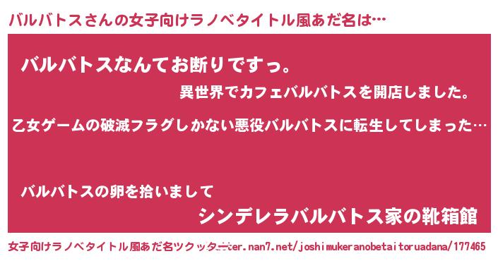 | 意味不明あだ名 | 『住所不定無職バルバトス(47歳)』 |