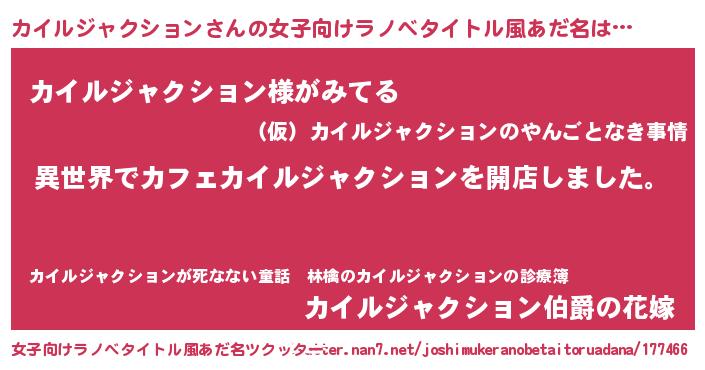 | 胡散臭い通販商品みたいなあだ名 | 『前代未聞の健康食品…その名も「カイルジャクション」』 |