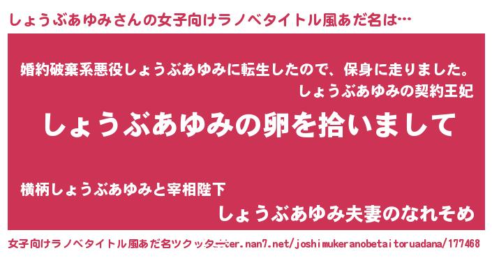 | 意味不明あだ名 | 『とにかく怪しいしょうぶあゆみ』 |