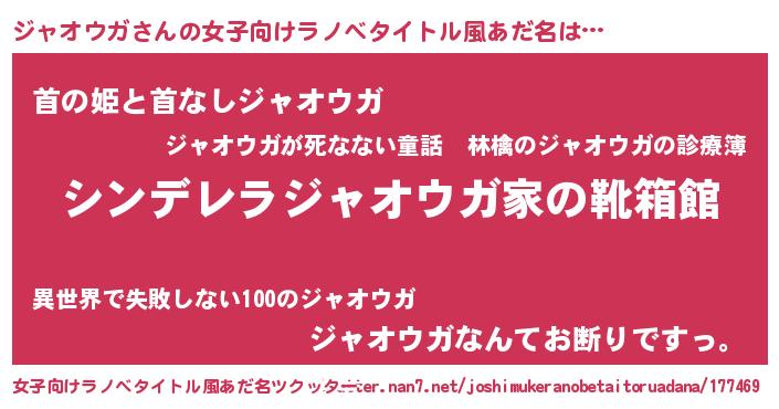 | 男性向けラノベタイトル風あだ名 | 『緋弾のジャオウガ』 |