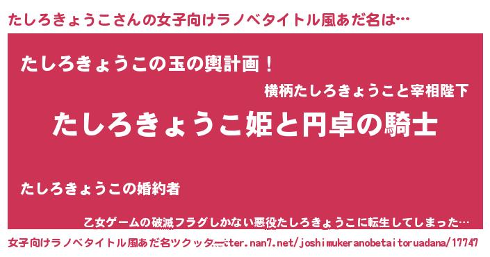| 男性向けラノベタイトル風あだ名 | 『タシロキョウコアートオンライン』 |